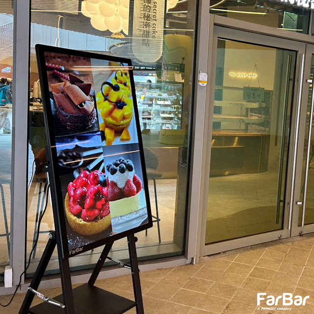 「法國的秘密甜點」創立於2013年10月,嚴選來自法國的金牌獎奶油,並針對台灣人喜好的口味做設計,成就每一款經典的甜點。此次採用FarBar畫架式電子看板,入門USB版軟體,無需連線網路